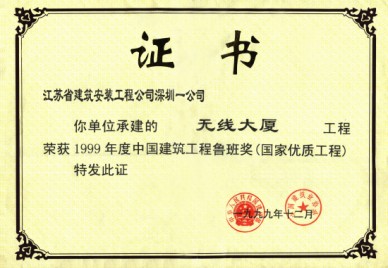 深圳無線大廈 時間:2008-12-29 11019 無線大廈(現名國通大廈)位于福田區新洲,建筑面積73069M2,高度201.5M,地下室2層,地上43層,是一座高智能化的電信寫字樓,結構設計為鋼筋砼框架一筒體結構,8-32層為無粘結預應力樓板砼,工程總造價6億元。工程于1995年6月開工,1997年12月竣工,施工中主要應用了無粘結預應力砼、高強泵送砼、粗直徑鋼筋連接、外墻干掛花崗巖等新技術。榮獲深圳市、廣東省、江蘇省的優質樣板工程,“江蘇省新技術應用示范工程”、江蘇省“揚子杯”獎和99年度國家“魯班獎”。