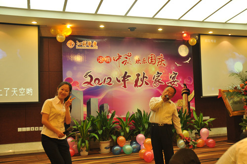 公司舉辦2012中秋家宴 時間:2012-10-06 4599 9月29日,公司在揚州西園大酒店隆重舉辦“濃情中秋,歡樂國慶——2012中秋家宴”,公司總部機關、在揚分支機構和駐外分公司回揚休假的經營層人員約百人共聚一堂,喜迎中秋、國慶佳節的來臨。家宴上,無論是領導還是普通員工,大家縱情高歌,歡樂表演,充分展現了華建大家庭其樂融融的喜慶氣氛,同時展示了華建人昂揚向上的精神風貌。