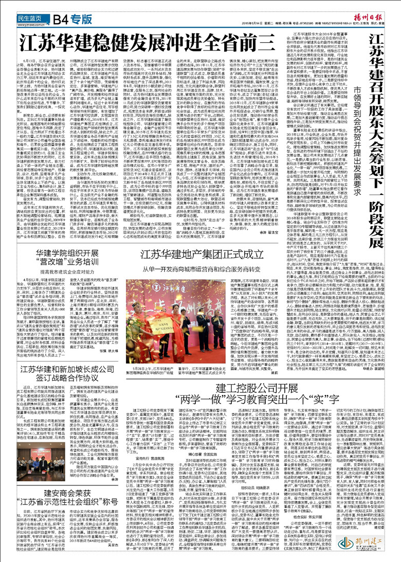 今日《揚州日報》刊登專版文章報道華建進(jìn)入全省前三有關(guān)消息