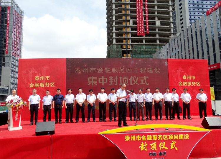 8月8日上午9時(shí)58分,泰州金融服務(wù)區(qū)工地鞭炮齊鳴,由江蘇華建承建的“蘇中第一高樓”:高達(dá)248米的泰州金融服務(wù)區(qū)6號(hào)樓成功封頂,封頂儀式上,公司副董事長(zhǎng)陳榮春代表施工方進(jìn)行了發(fā)言。