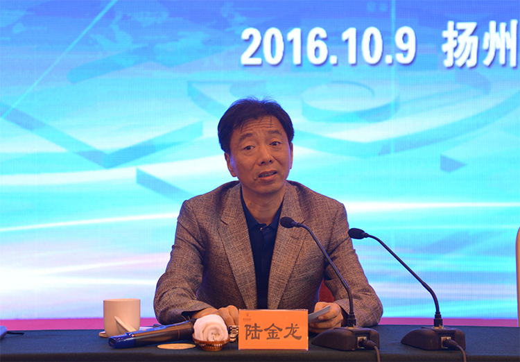 ▲揚州生態科技新城黨工委書記、華建聯盟名譽主席陸金龍講話