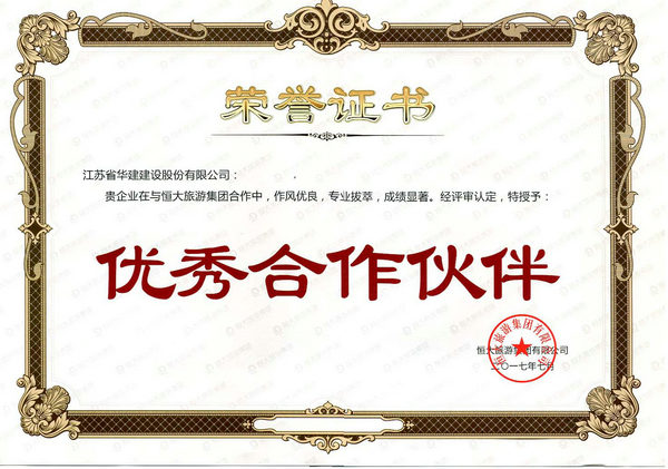 我司被恒大旅游集團(tuán)評(píng)為“優(yōu)秀合作伙伴”