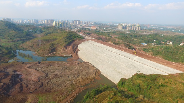 官盛湖大壩作為一項以城市景觀為主、兼有防洪功能的綜合性水利工程,主要由樞紐工程、泄洪渠工程組成。官盛湖湖區總庫容987.73萬立方米,壩頂長349米,最大壩高48.5米,壩體填筑總量達157.93萬方