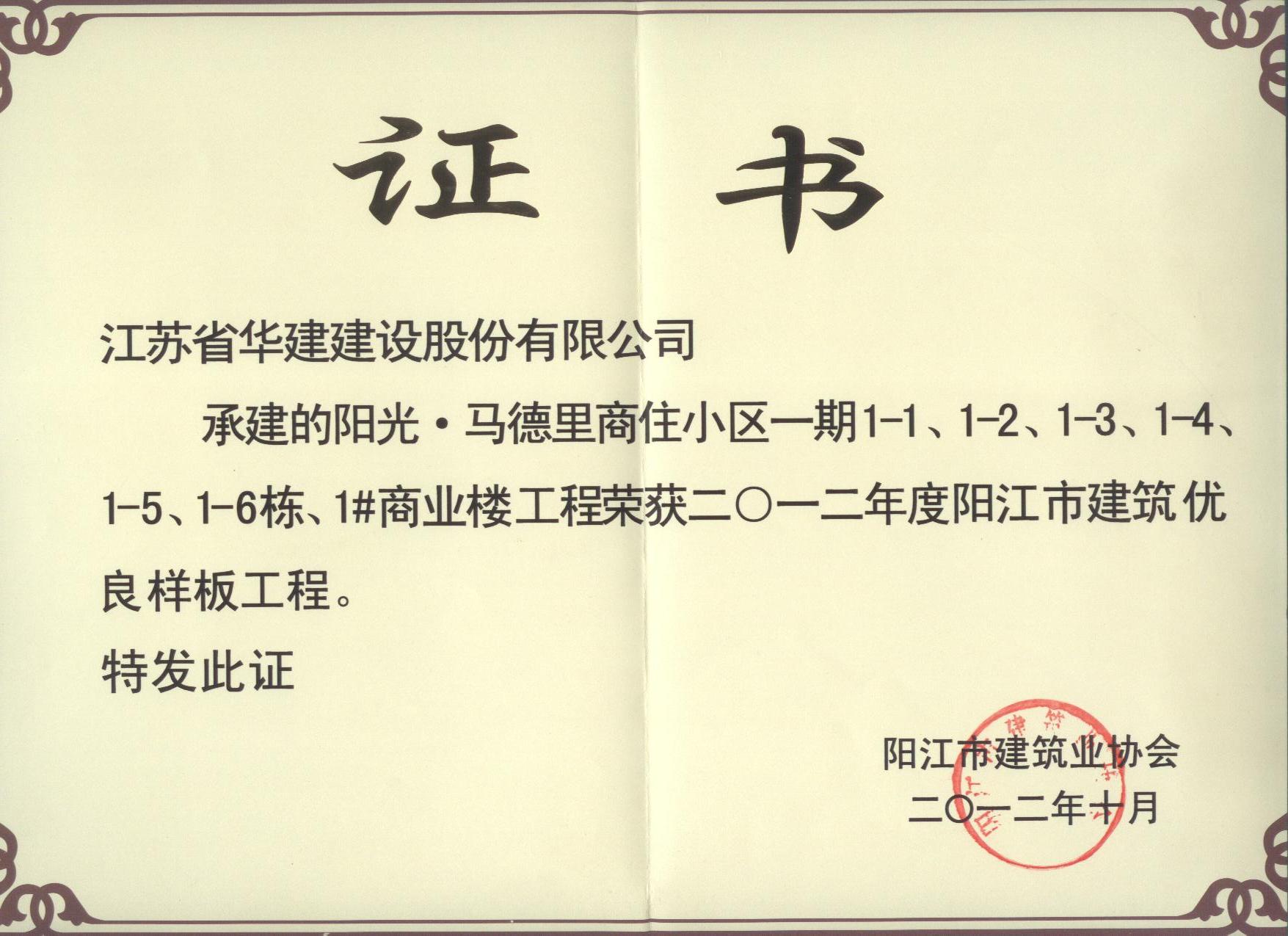 2012陽江陽光馬德里項目陽江市優(yōu)良樣板工程