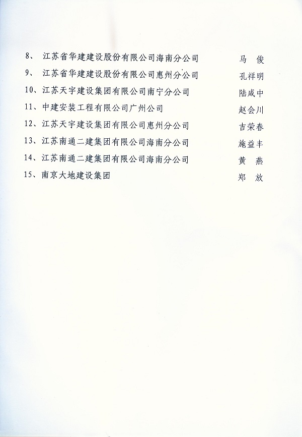 2013年江蘇進粵、桂、閩、瓊建筑施工先進企業(yè)、優(yōu)秀企業(yè)經(jīng)理...