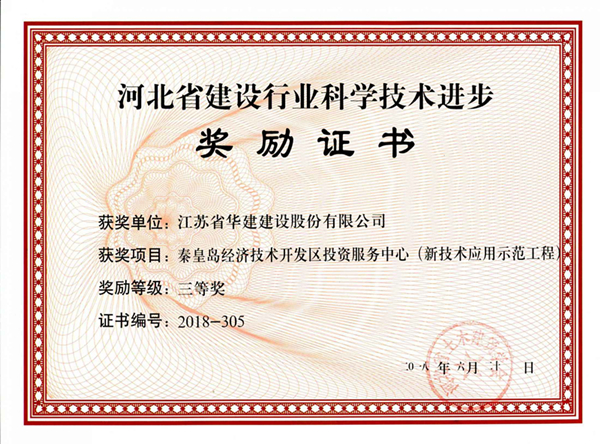 北京公司首獲省級建設行業科技進步獎 時間:2018-08-09 4032 近日,由北京分公司承建的秦皇島經濟技術開發區投資服務中心(新技術應用示范工程)、北戴河科技會展中心工程(新技術應用示范工程)兩項工程被河北省土木建筑學會表彰為河北省建設行業科學技術進步獎三等獎,這是北京分公司首次獲得該獎項。