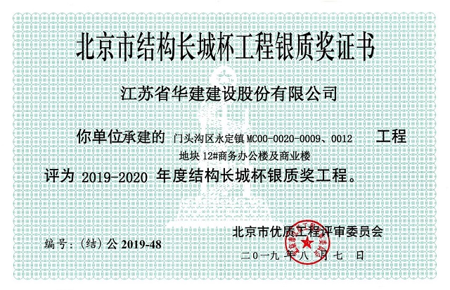 公司再獲三項省級優質結構工程 時間:2019-09-19 3194 近日,北京市工程建設質量管理協會公布了2019-2020年度第一批北京市建筑結構長城杯獲獎工程名單,由我司承建的門頭溝區永定鎮MC00-0020-0009、0012地塊6#住宅樓及商業樓項目和門頭溝區永定鎮MC00-0020-0009、0012地塊12#商務辦公樓及商業樓項目均被評為2019-2020年度結構長城杯銀質獎工程。 另外,由我司承建的楊柳郡柳園5#、6#、7#樓及地下室工程被評定為2019年廣西建設工程優質結構獎。