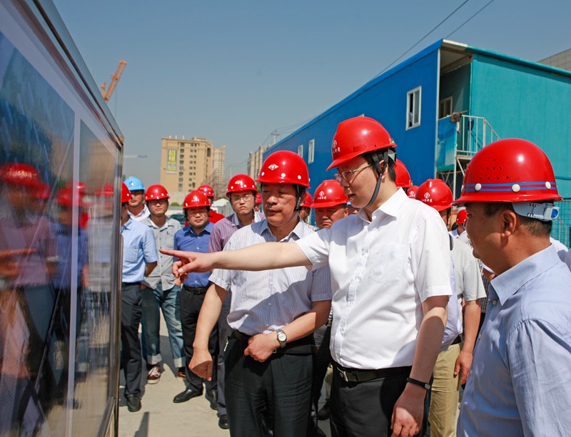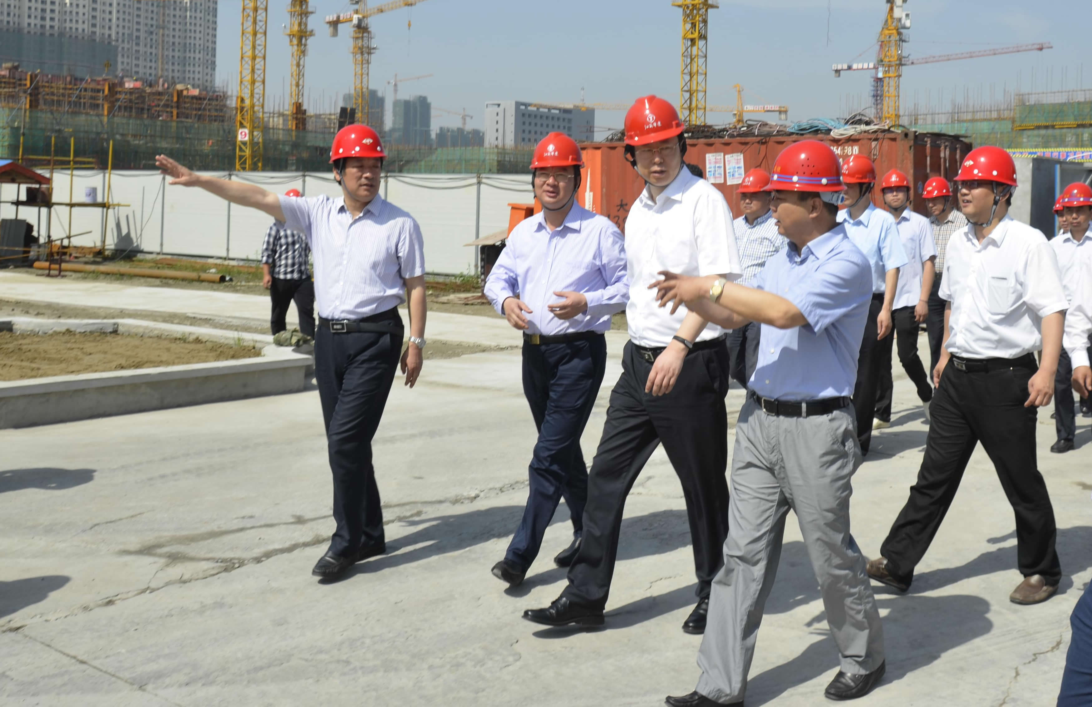 視察由江蘇華建蘇北分公司承建的泰州金融服務(wù)區(qū)一標(biāo)段(東組團(tuán))項(xiàng)目