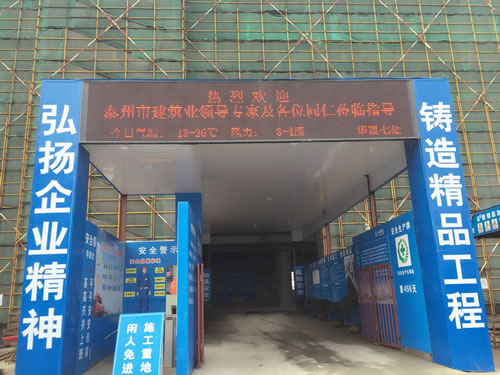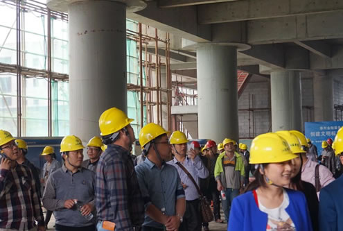 4月21日下午,江蘇華建蘇北分公司承建的泰州金融服務(wù)中心現(xiàn)場,彩旗獵獵,熱鬧非凡,泰州市創(chuàng)精品工程觀摩會隆重舉行,泰州市建工局副局長王京陵以及泰州市各市(區(qū))建筑業(yè)主管部門工程創(chuàng)優(yōu)負責(zé)人、建筑業(yè)協(xié)會負責(zé)人、全市二級以上資質(zhì)企業(yè)總工程師、技術(shù)負責(zé)人、創(chuàng)優(yōu)企業(yè)總工程師、項目經(jīng)理、技術(shù)負責(zé)人等共計400人參加了觀摩活動,與會人員對江蘇華建在建設(shè)金融服務(wù)中心興業(yè)大廈過程中創(chuàng)下了江蘇泰州地區(qū)多個之最表示了濃厚興趣,多個之最包括:高度最高(地上58層、設(shè)計高度:
