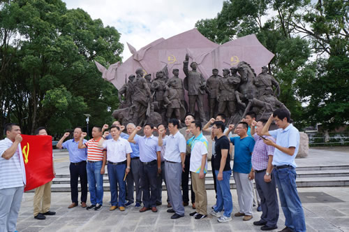上海分公司黨總支組織開展“紅色之旅”教育 時間:2016-08-16 4252 8月12日,上海分公司黨總支組織部分黨員干部和入黨積極分子共18人,赴愛國主義教育基地福建古田開展“促兩學一做,走紅色之旅”教育活動,在“主席園”向毛主席像敬獻花籃,在“豐碑軍魂”雕像前面對黨旗重溫入黨誓詞,還仔細參觀古田會議地址和紀念館,回顧緬懷了老一輩無產階級革命家的不朽事跡。大家牢記“古田會議永放光芒”精神,紛紛表示:“不忘初心,繼續前行”。
