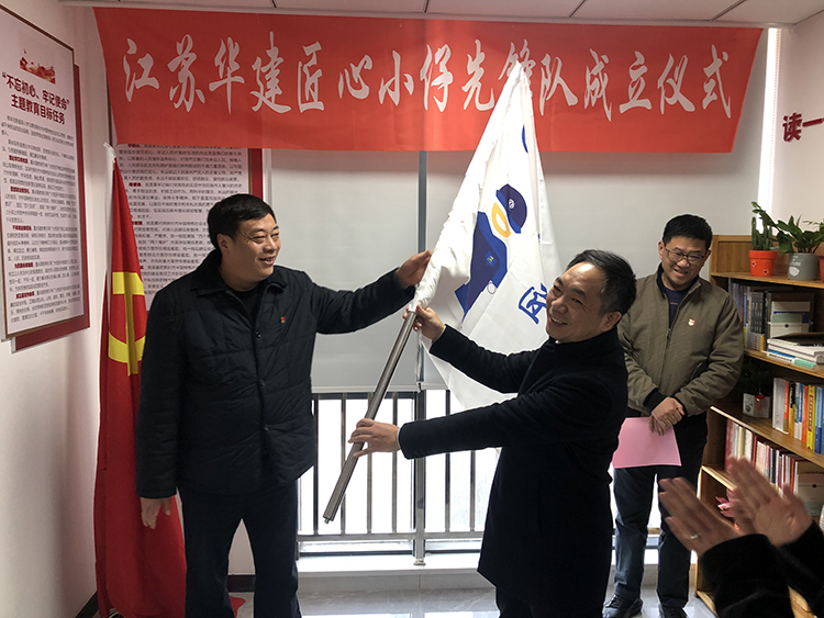 成立儀式上,在所有隊員高唱國歌之后,錢啟明代表總部黨委向江蘇華建匠心小仔先鋒隊的成立表示熱烈祝賀,并向先鋒隊隊長莊重授旗。他結合當前形勢任務提出三點要求:一是要抓基礎強“根”固“魂”。要以“五聚焦五落實”為主要抓手,堅持不懈攻弱項補短板、抓基層打基礎,推動黨組織領導更加堅強、企業黨建工作體制機制更加完善、黨的組織覆蓋和工作覆蓋更加全面、黨支部建設更加規范、黨員教育管理更加有效、黨建與生產經營融合更加緊密,全面提高基層黨組織建設和黨員教育管理工作質量,為推動企業高質量發展提供堅強組織保證。二是要創特色發揮作用。要把匠人匠心的智慧和黨的初心使命有機融合,通過開展豐富多彩的活動,引領廣大黨員、團員和骨干人才,在工作、學習、生活方面發揮先鋒模范作用,在“危、急、重、難”任務面前挺身而出,真正體現出先鋒隊的作用,創建一支想干事、能干事、干成事的優秀團隊,創出新時代企業黨建工作的新特色。三是要強本領擔當奉獻。作為國有企業,必須打造一支忠誠干凈擔當的高素質干部隊伍,全面錘煉提升“八個本領”,尤其要強化廉政建設,嚴格遵守黨規黨紀,更加注重提高政治本領、斗爭本領,維護好干事創業、風清氣正的政治生態。他希望江蘇華建匠心小仔先鋒隊能夠創成響當當的特色黨建品牌,以習近平新時代中國特色社會主義思想為指導,進一步提高政治站位,增強擔當奉獻意識,為人民幸福、民族復興和企業發展作出更大貢獻。