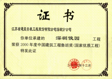深圳俊園獲98年深圳市文明工地,99年獲江蘇省優質工程金獎,同年被授江蘇省建筑業新技術應用示范工程,2000年獲江蘇省“揚子杯”獎,深圳市優質樣板工程第一名和金牛獎及全國建筑業最高獎“魯班獎”。