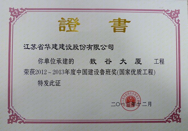 秦皇島數谷大廈工程位于秦皇島開發區數谷科技園區核心位置,建筑面積46378㎡,框架剪力墻結構、鋼結構,建筑高度66.45m,地下1層,地上16層,各項功能齊備,設備先進,是一座低碳節能、綠色環保的智能化寫字樓。該工程在技術創新、質量控制、安全文明、項目管理等各個方面強化過程控制,做到管理科學嚴謹、工程質量精細,得到了社會各界的好評。工程先后榮獲河北省安全文明工地、河北省十佳綠色建筑、住建部綠色建筑創新獎、河北省優秀工程勘察設計獎、河北省結構優質工程獎、河北省建設工程安濟杯獎(省優)、全國優秀項目管理成果一等獎、全國優秀QC小組等稱號。2013年,被中建協評為2012-2013年度中國建設工程魯班獎(國家優質工程)。