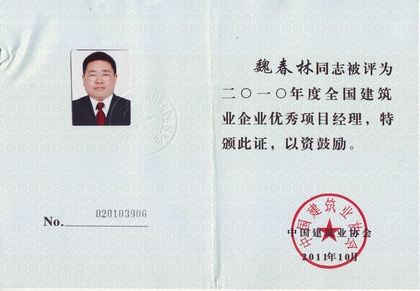 魏春林,高級(jí)工程師,現(xiàn)任海南公司一處主任、支部書(shū)記。自1991年5月以來(lái),參與施工管理的多項(xiàng)工程被評(píng)為海南省優(yōu),由其擔(dān)任項(xiàng)目經(jīng)理的海南省文化藝術(shù)中心榮獲魯班獎(jiǎng)及“全國(guó)AAA級(jí)安全文明標(biāo)準(zhǔn)化誠(chéng)信工地”。曾獲“海南省建筑業(yè)優(yōu)秀建造師”、“全國(guó)建筑業(yè)企業(yè)優(yōu)秀項(xiàng)目經(jīng)理”稱號(hào)。