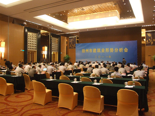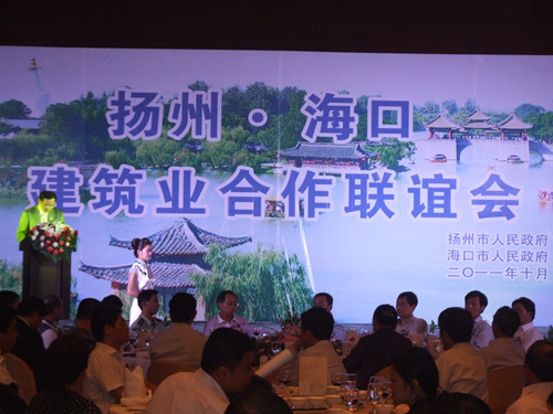 10月20日,揚州·海口建筑業合作聯誼會暨1-3季度揚州建筑業形勢分析會議在海口市文華大酒店隆重召開,揚州市委常委、副市長陳揚、市人大副主任高瑞芹、市政協副主席朱正海等領導參加了會議。陳揚副市長指出此次會議主要是認真貫徹落實揚州市第六次黨代會精神,回顧總結今年以來全市建筑業運行發展情況,研究部署下一階段重點工作,特別是分析研判國務院加快建設海南國際旅游島的政策機遇,進一步拓展深耕海南建筑市場,推動建筑業總量擴大、績效提升,確保全面完成全年目標任務。高瑞芹副主任宣讀了“關于表彰2010年度揚州市建筑業綜合實力20強企業的決定”,江蘇省華建建設股份有限公司榮獲“房屋建筑類10強企業”,海口市建設局卓桂勇副局長介紹了海口市建筑市場情況,王宏副總經理代表市建工控股公司、華建公司作了交流發言。