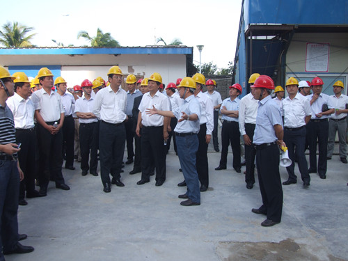 會后,陳揚副市長帶隊視察,120多名參會代表參觀了由華建公司總承包在建施工的和風江岸項目和已竣工交付使用的海南省文化藝術中心項目(魯班獎已公示),聽取了王宏副總經理的情況介紹,觀看了文化藝術中心工程創魯班獎宣傳片。陳揚副市長對廣大工程建設者表示慰問,對華建公司積極參與海南國際旅游島建設表示肯定,對華建公司在海南市場取得的工程業績表示贊賞,希望華建公司再接再厲,為揚州建筑隊伍開拓海南市場創品牌、樹形象、扛好旗。