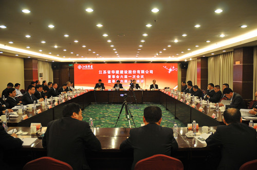4月27日下午,江蘇省華建建設(shè)股份有限公司股東大會2013年會暨董事會、監(jiān)事會五屆七次會議在揚州召開。會議由陸金龍董事長主持,10名股東代表、11名董事、4名監(jiān)事出席會議,公司高級管理人員、各分支機構(gòu)和總部各部室負責人、公司律師團代表列席會議。會議聽取和審議通過了副董事長、總經(jīng)理宗有農(nóng)同志所作的董事會和經(jīng)營層工作報告,監(jiān)事會主席吳士茂所作的監(jiān)事會工作報告,公司總會計師李長棟同志所作的《關(guān)于2012年度財務(wù)決算和2013年度財務(wù)預(yù)算方案的報告》和《關(guān)于2012年度股利分配方案的報告》。
