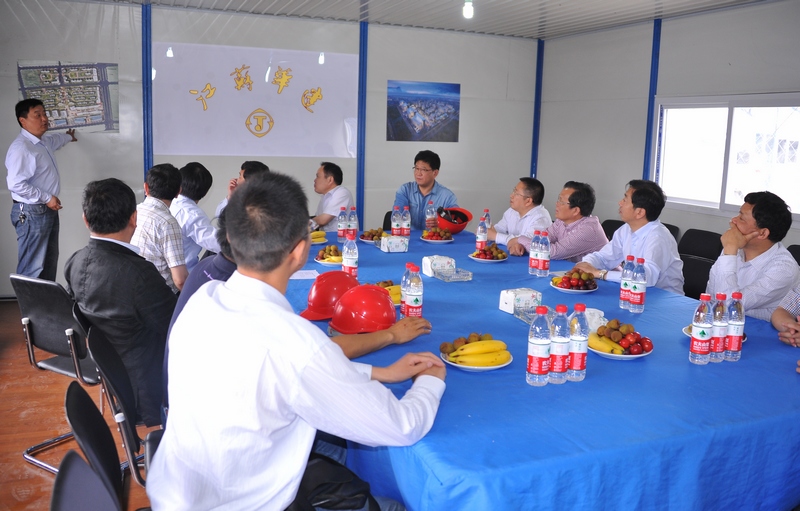6月4日下午,陸金龍董事長一行赴上海公司萬科虹橋萬樹商辦項目進行調研。上海公司第一工程處項目部負責人首先向公司領導介紹了項目的基本概況和工程特色,并匯報了工程施工現狀和時間節點要求。陸董事長表示,該項目是公司與萬科在深圳、北京等地良好合作后在上海市場又一次強強聯手,也是萬科在上海大舉進軍商業地產的又一力作,對建筑形態、能耗控制、綠色建筑標準等方面都有較嚴的指標,公司上下要加強管控力度,提升管理水平,有效控制成本,群策群力,克服困難,努力把該項目做成精品工程。