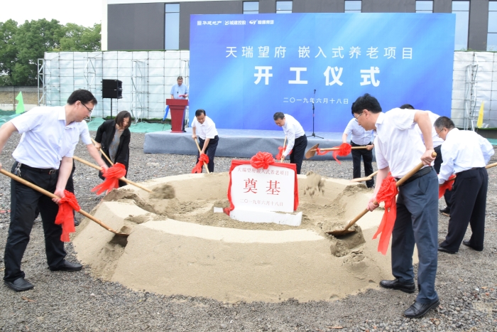 618日上午,揚(yáng)州首個主城區(qū)嵌入式養(yǎng)老試點項目天瑞望府舉行開工奠基儀式,建工控股、江蘇華建董事長王宏,城建控股總經(jīng)理葉善祥,恒通建設(shè)董事長陳有川,市民政局副局長徐德林,建工控股副總經(jīng)理、華建地產(chǎn)董事長程杰,城建控股副總經(jīng)理方璇智,市民政局養(yǎng)老服務(wù)處處長潘勤,恒通建設(shè)總經(jīng)理談德元等相關(guān)單位和部門領(lǐng)導(dǎo)及各施工單位負(fù)責(zé)人出席。儀式由項目公司揚(yáng)州華鵬置業(yè)副總經(jīng)理刁華根主持。