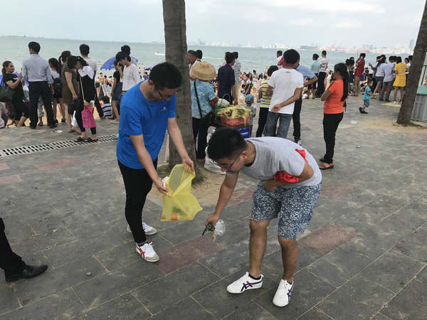 他們踏著共享單車,迎著驕陽,沿著美麗的濱海大道一路騎行,感受自然,宣傳健康生活的理念。同時,在騎行路線的終點假日海灘,大家開展公益凈灘行動,拾撿垃圾,擁抱大海,用實際行動來支持海洋保護(hù)。