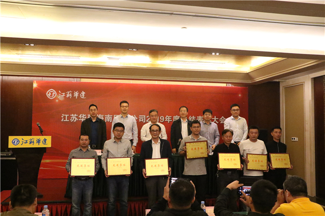 舊歲已展千重錦,新年再進百尺桿。14日下午,江蘇華建海南區域公司隆重召開2019年度總結表彰大會。各工程處、直管團隊及湖北、廣西、宜昌分公司主要負責人,先進集體、先進個人代表,海南公司機關全體人員近百人參加會議。大會由海南分公司副總經理、黨總支副書記郁遠同志主持。