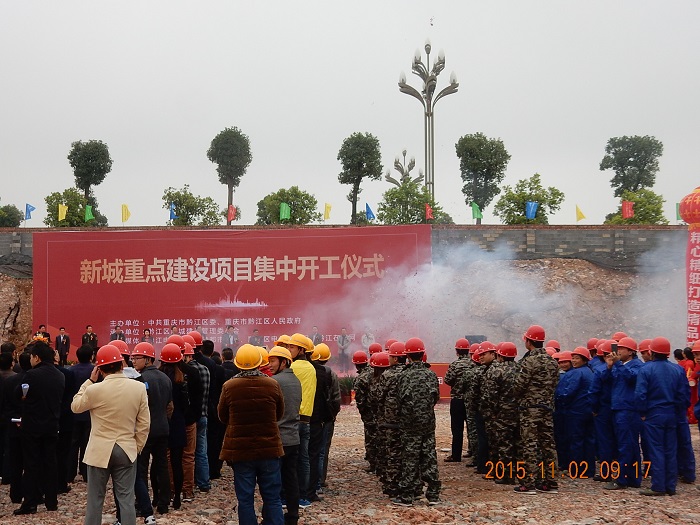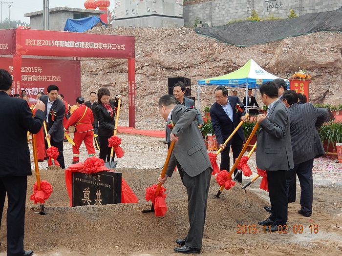 11月2日上午9:00,重慶黔江新城重點建設項目集中開工儀式在我公司承建的黔江區學府花苑項目現場隆重舉行。黔江區委書記余長明、區長徐江、人大主任梁正華、政協主席秦代書率四套班子成員和項目業主、施工方、監理方代表等共同出席儀式并為項目培土奠基。