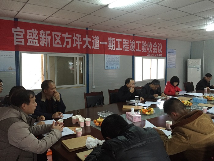官盛新區(qū)管委會規(guī)建處主任柏魯代表驗收小組發(fā)言,宣讀了驗收小組驗收結論,原則同意驗收意見。他總結指出,方坪大道一期竣工驗收代表了官盛新區(qū)建設取得了又一項重要成果,希望各參建單位再接再厲、再創(chuàng)佳績。李榮盛常委作總結發(fā)言,他表示方坪大道一期的竣工驗收實屬不易,對該工程竣工驗收表示熱烈祝賀,同時充分肯定了江蘇華建前階段工作,對現場工程質量、安全生產、文明施工、工程進度給予了高度評價。
