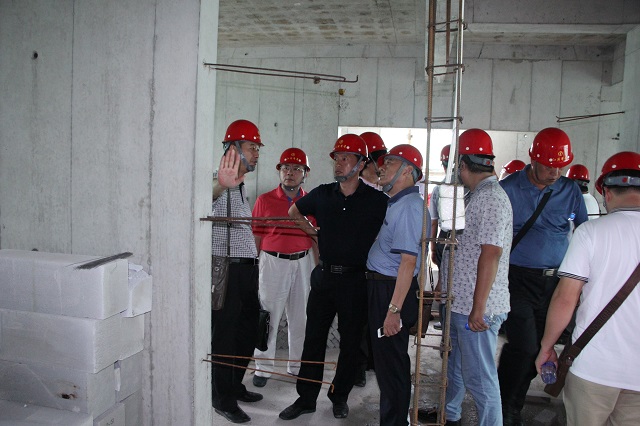 9月8日,在珠海公司總工程師周學軍陪同下,由深圳公司常務副總經理、總工程師吳碧橋帶隊,深圳公司各工程處生產主任、技術主任、項目經理等一行33人到珠海公司承建的帝景灣山莊和晉和天慶花園項目觀摩交流鋁合金模板施工技術。周總通過圖文并茂的PPT講解和現場實地觀摩詳細介紹了鋁合金模板施工技術特點以及與傳統木模板施工的差別,對施工過程關鍵節點做法、成本控制做了講解。雙方人員針對細節和質量控制問題進行了深度交流。