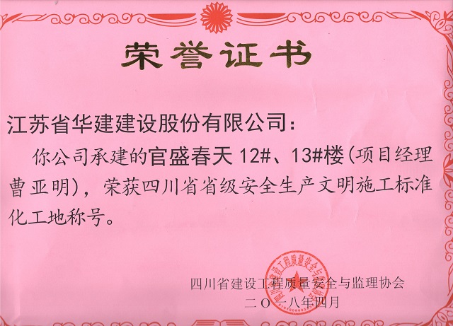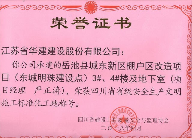 重慶分公司2項目獲評“四川省安全生產文明施工標準化工地” 時間:2018-04-20 3182 4月18日,重慶分公司項目創優再獲新成果,公司承建的岳池縣城東新區棚戶區改造項目(東城明珠建設點)3#、4#及地下室、官盛春天12#、13#樓被四川省建設工程質量安全與監理協會評為“四川省省級安全生產文明施工標準化工地”。至此,重慶分公司獲省級標化工地獎項已達3項。