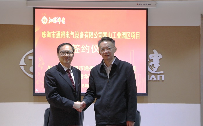 20181122日,珠海市通得電氣設備有限公司與我公司就通得電氣富山工業園區項目舉行簽約儀式,通得電氣董事長黃建成與江蘇華建珠海區域公司總經理呂方達分別代表雙方簽訂《建設工程施工合同》。通得電氣是一家專業從事微電機及其配件的研發、生產、銷售和服務的綜合型集團公司,是國際知名家電制造商的微電機核心供應商。