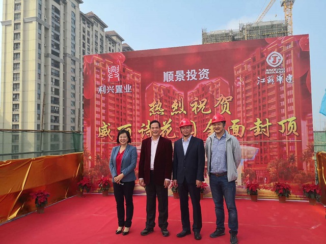 2019114日,第一項目部承擔施工任務的陽江威麗詩花園2期項目提前60天實現主體結構全面封頂。珠海利騰集團董事長黃金紅、總經理譚劍云,江蘇華建珠海區域公司總經理呂方達等參加封頂儀式。