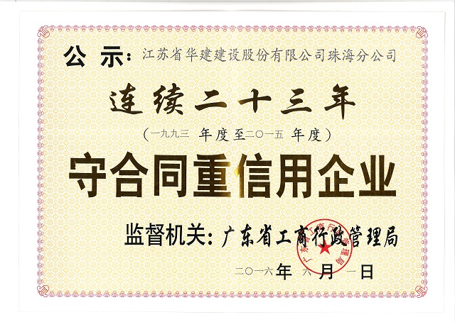 2016廣東省連續24年守合同重信用企業